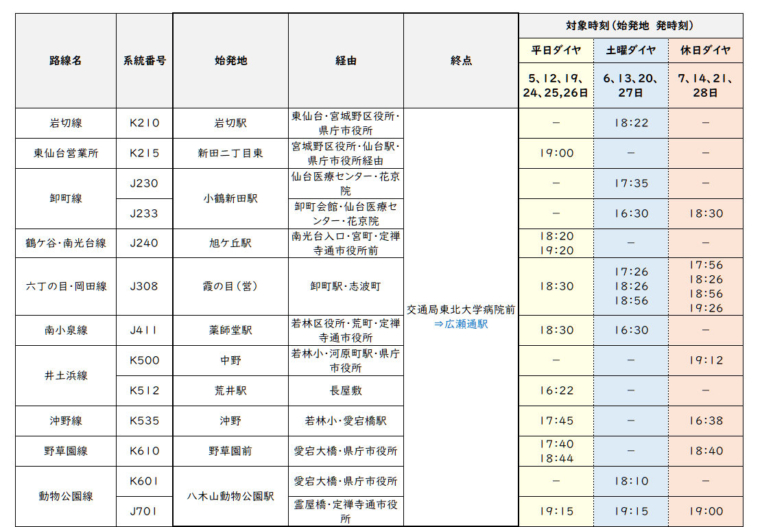 | 【対象便】 | (通常の始発地)交通局東北大学病院前 | |