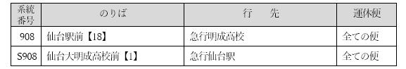 冬季学校休校に伴い、停留所時刻表の下線付き時刻便を運休いたします。①仙台大明成高校関係
