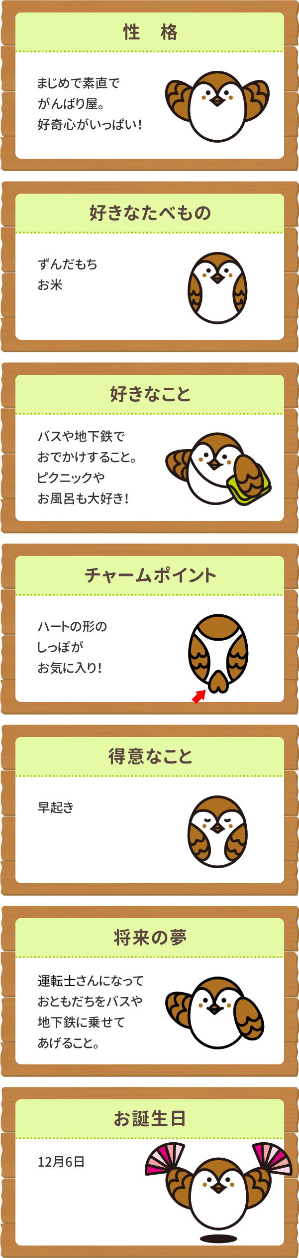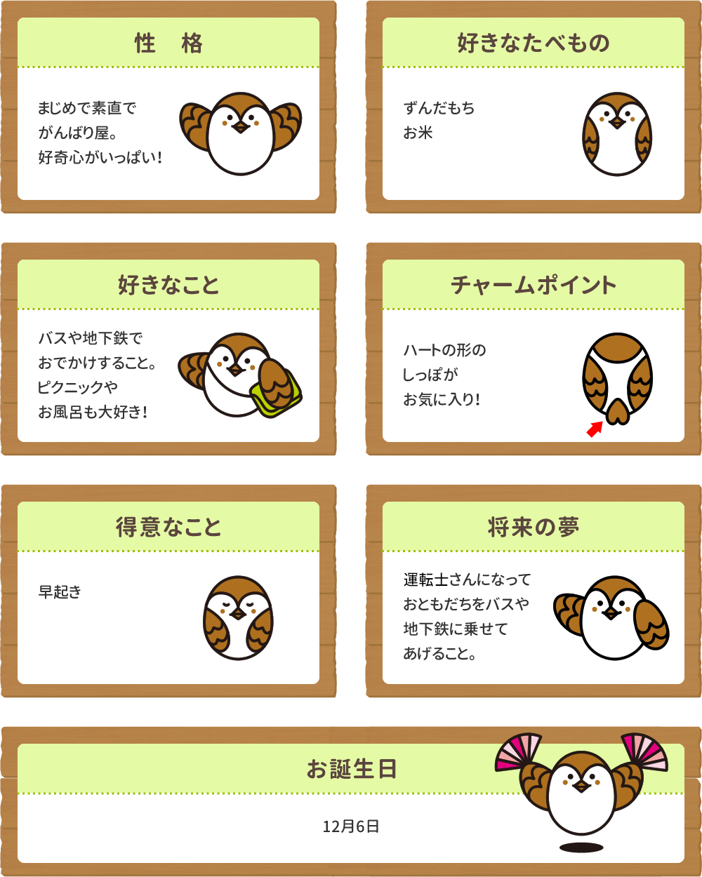 イクスカすずめは、平成26年に誕生したIC乗車券「icsca」のデザインとして誕生し、令和6年2月に仙台市交通局の「マスコットキャラクター」になりました。