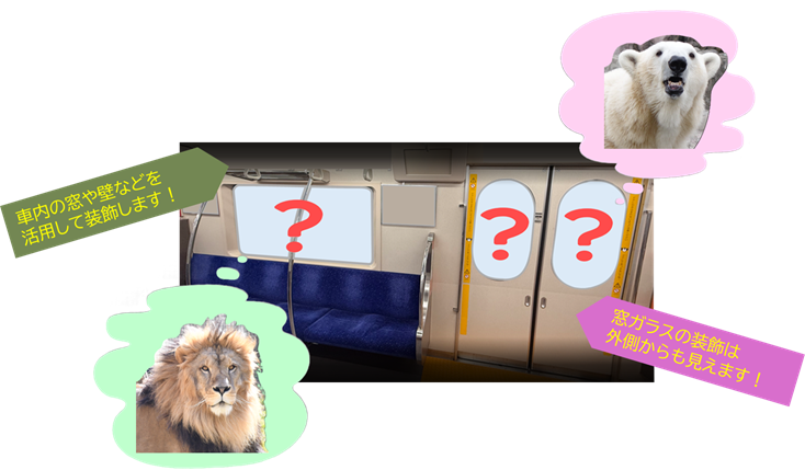 施設ごとに1両を完全ジャック!窓ガラスや壁にあの人気者たちがデコレーションされる予定です。