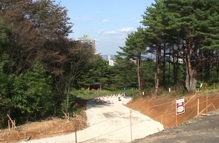 旧ゴルフ場内のフェアウェイ上に建設中です。